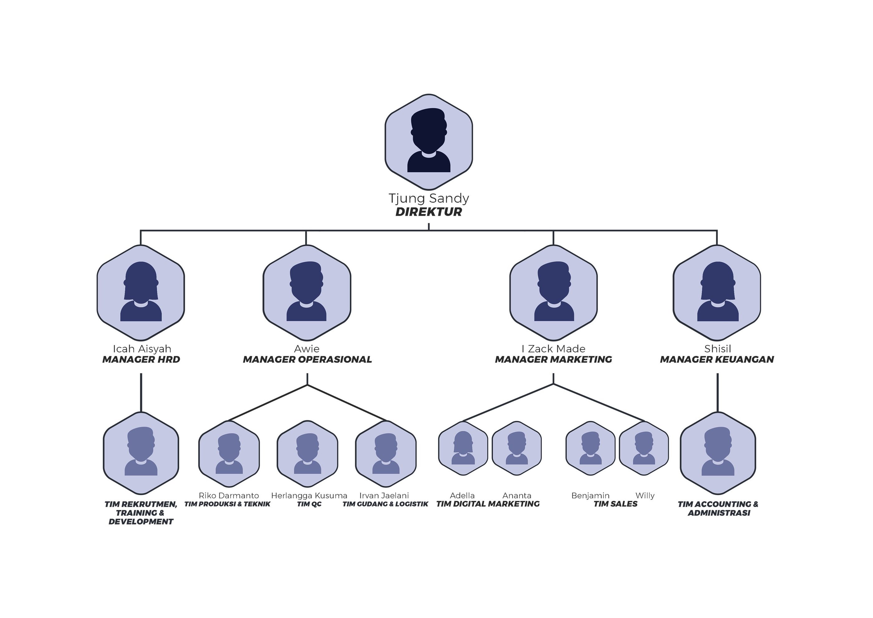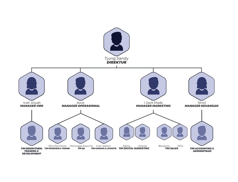 Divisi Operasional – Di bawah Awie, bertanggung jawab atas kelancaran proses produksi, pengawasan kualitas, serta manajemen logistik dan distribusi.